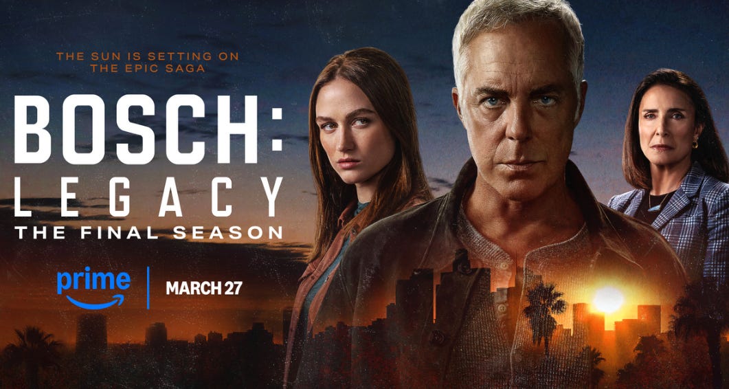 Prime Video has released the trailer and key artwork for its hit series Bosch: Legacy, which will return for its third and final season on March 27, with ten episodes exclusively available on Prime Video across more than 240 countries and territories worldwide. Four episodes will be released on Thursday, March 27, followed by two new episodes each week until the series finale on April 17. The series follows Harry Bosch (Titus Welliver), a retired LAPD homicide detective turned private investigator; Honey “Money” Chandler (Mimi Rogers), an attorney struggling to keep her faith in the justice system; and Maddie Bosch (Madison Lintz), as she faces the challenges of being a patrol cop on the streets of Los Angeles.